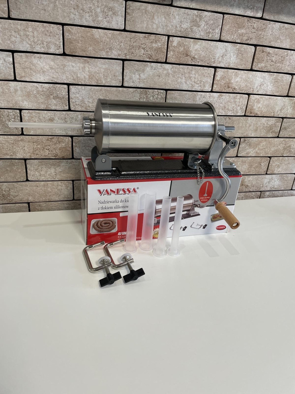Ковбасна машина Vanessa практична та проста в користуванні. Дві струбцини дають змогу надійно закріпити пристрій на вашій робочій поверхні.